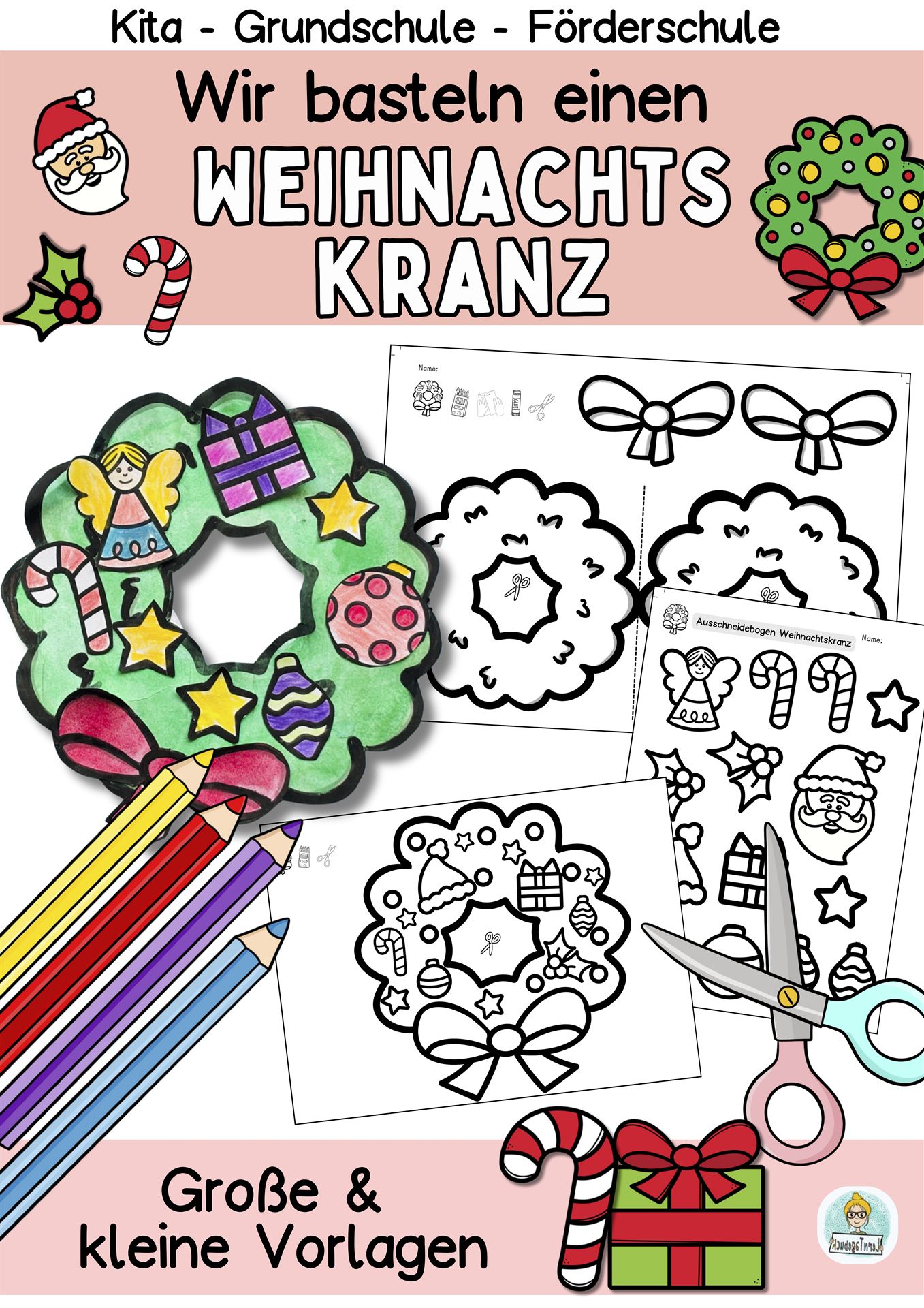 Wir basteln einen (einfachen) Weihnachtskranz. Vorlagen zum Ausmalen und Basteln als Weihnachtsdeko 🎨✂️🎅🏻