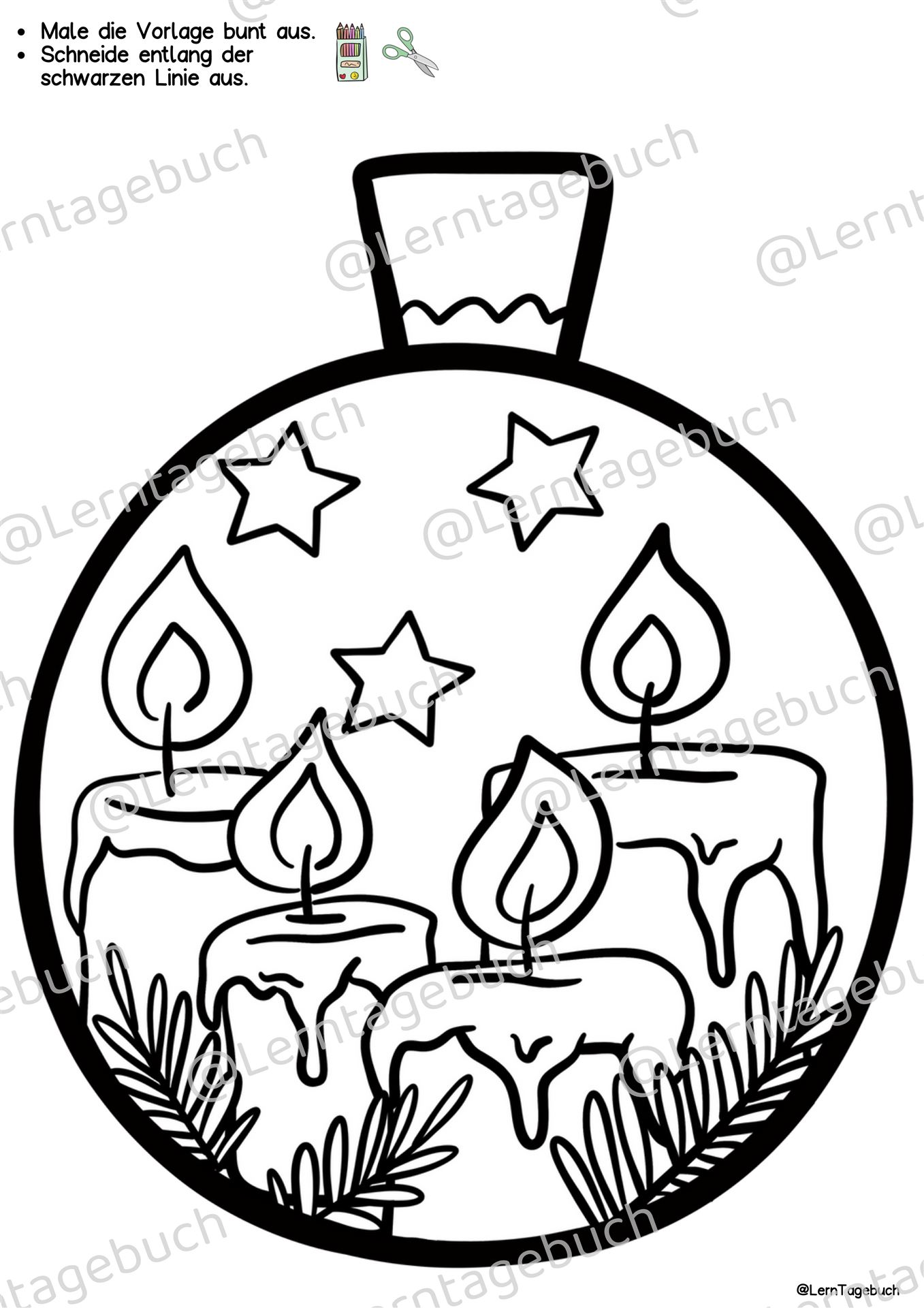 Weihnachtskugel-Ausmalbilder zum Malen und als Bastelideen für Kinder zu Weihnachten. DIY-Weihnachtsdeko basteln im Kindergarten, in der Grundschule, in der Förderschule oder in der Kinderbetreuung in der OGS.