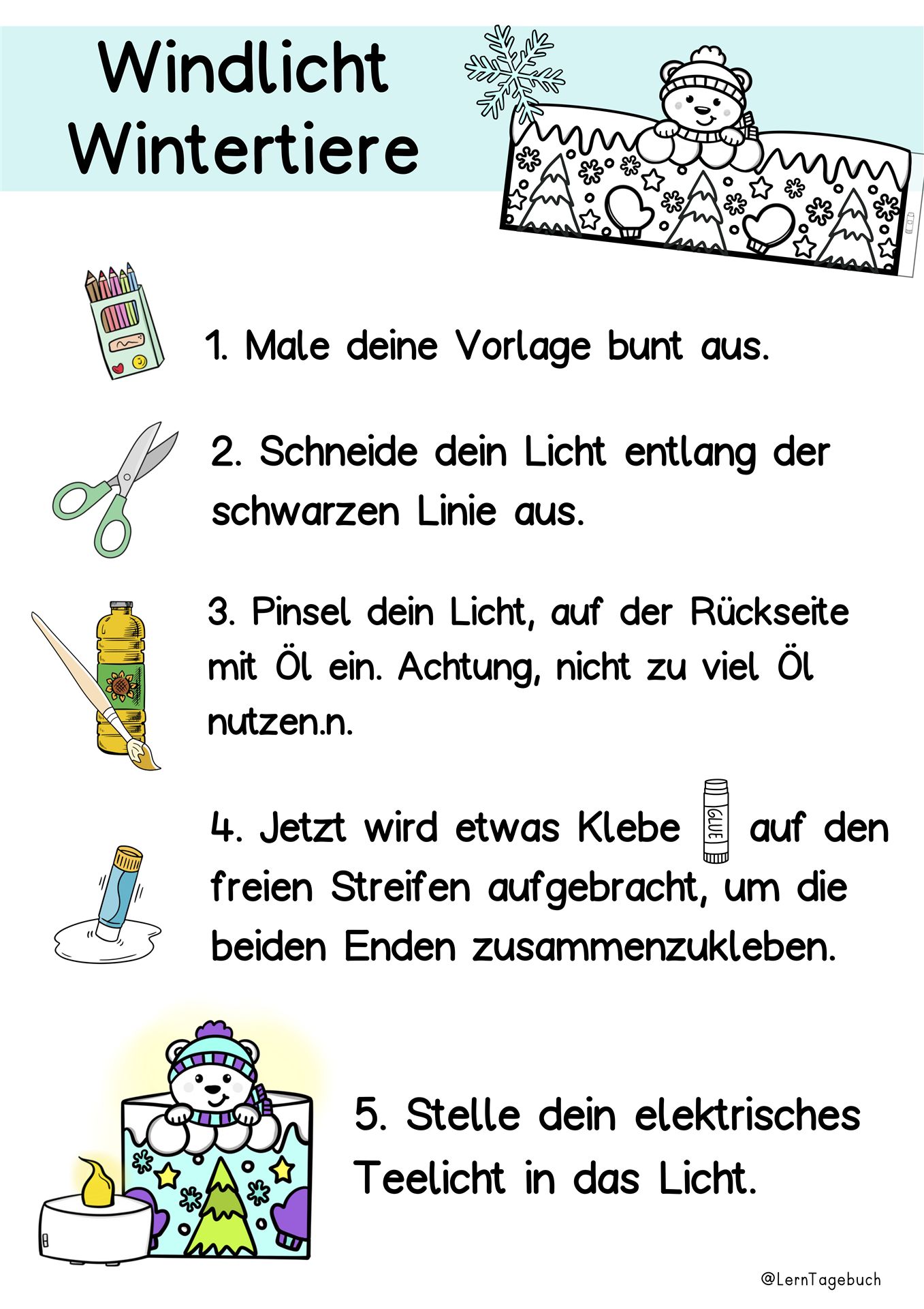Winter-Windlichter basteln mit Wintertieren (Fuchs, Eisbär, Pinguin, Eule...)