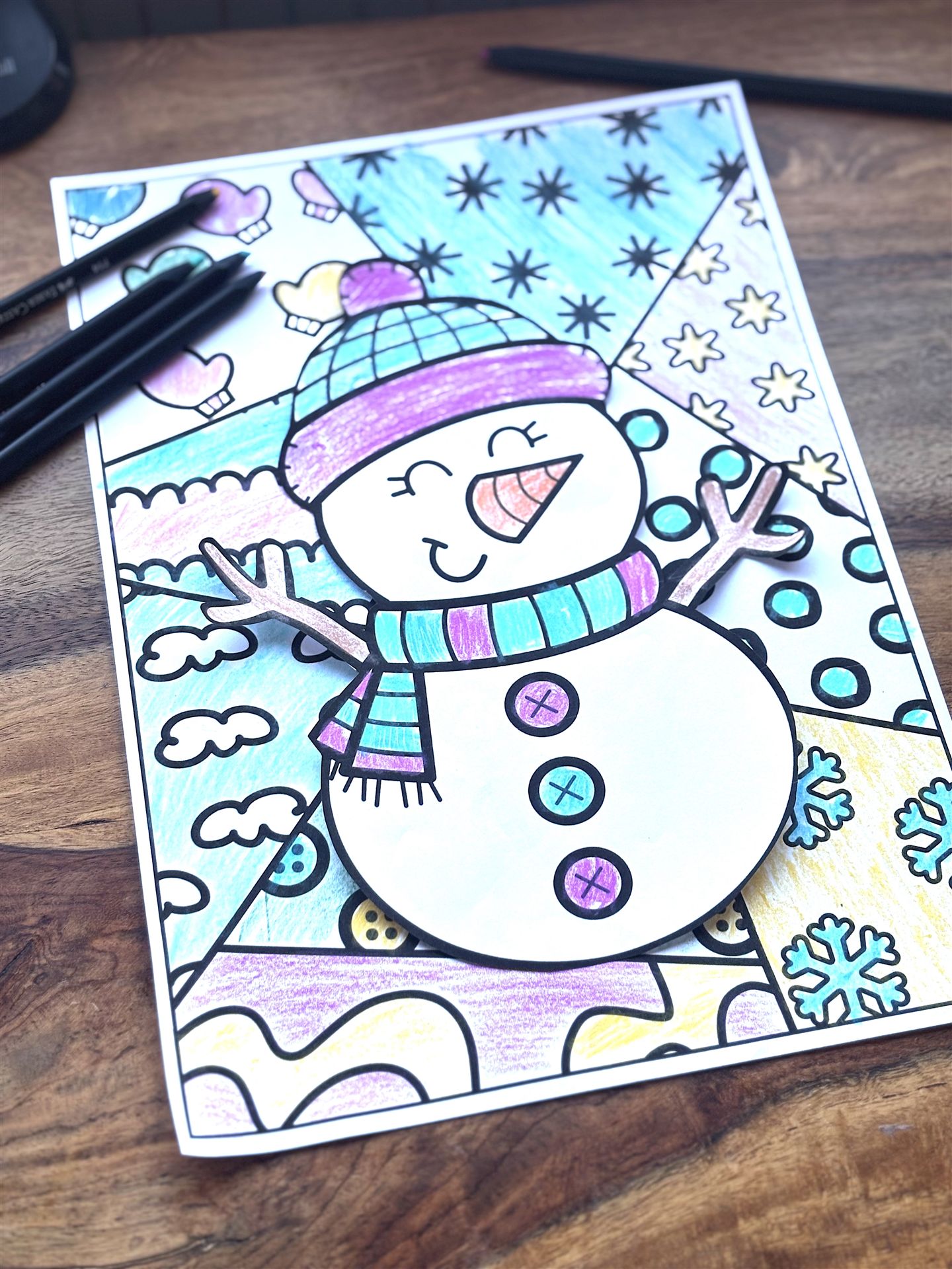 Winter Ausmalbilder mit Popart Hintergründen