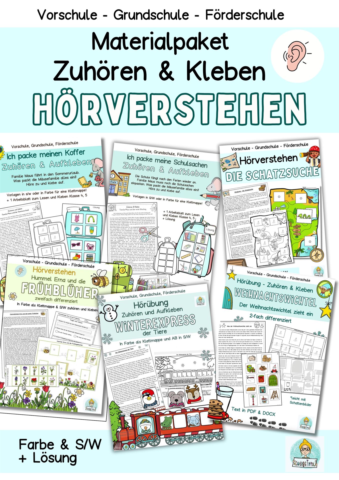 Zuhören und Kleben: Lernmaterial zum Hörverstehen für Kinder im Kindergarten, Vorschule, Grundschule, DaZ-Unterricht und Förderunterricht.