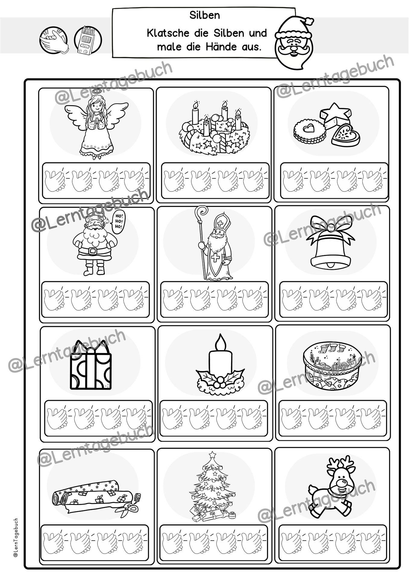 Die Arbeitsblätter können als Übungsheft eingesetzt werden, sind aber auch ideal für eine weihnachtliche Lerntheke oder für eine Weihnachtswerkstatt.
