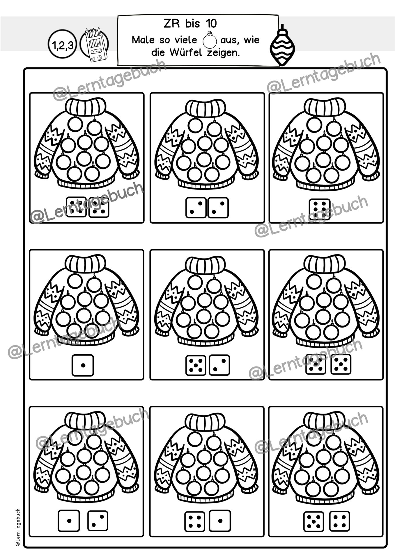 Mathe-Lernspiel: Weihnachts-Spielkarten zum Mengen erfassen im Zahlenraum 10