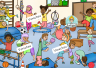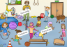 Wimmelbild Sport, Sportunterricht, Sporthalle