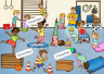 Das Wimmelbild erhältst du in DIN A4 zum Ausdrucken (laminieren) oder in 16:9 als digitales Tafelbild am Smartboards oder per Beamer.